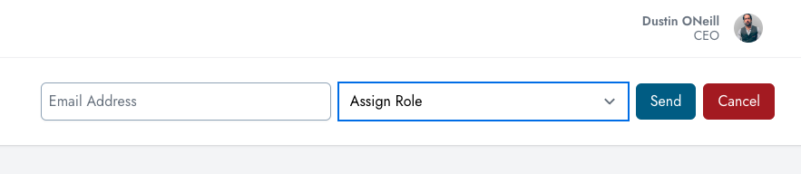 To invite someone into your organization, simply click on the INVITE button, complete the simple FORM, and SEND. This will trigger an EMAIL INVITATION to the email address provided and link that user to your organization. If the person does not have an account, they will be prompted to create an account and automatically added to your organization. In the invitation process you have the ability to assign either and ADMIN or USER privileges within the organization to the user.