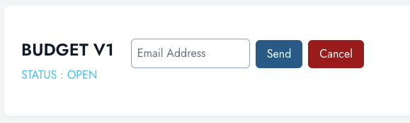Proposals can be emailed directly from EvA-App by clicking the SEND FOR APPROVAL button at the top of the page. Simply fill in the EMAIL ADDRESS and click SEND. This will send an email to the address with a link to view and approve the budget. The email address DOES NOT need to be a registered user to approve. Sending triggering this email will automatically update the status to PENDING.